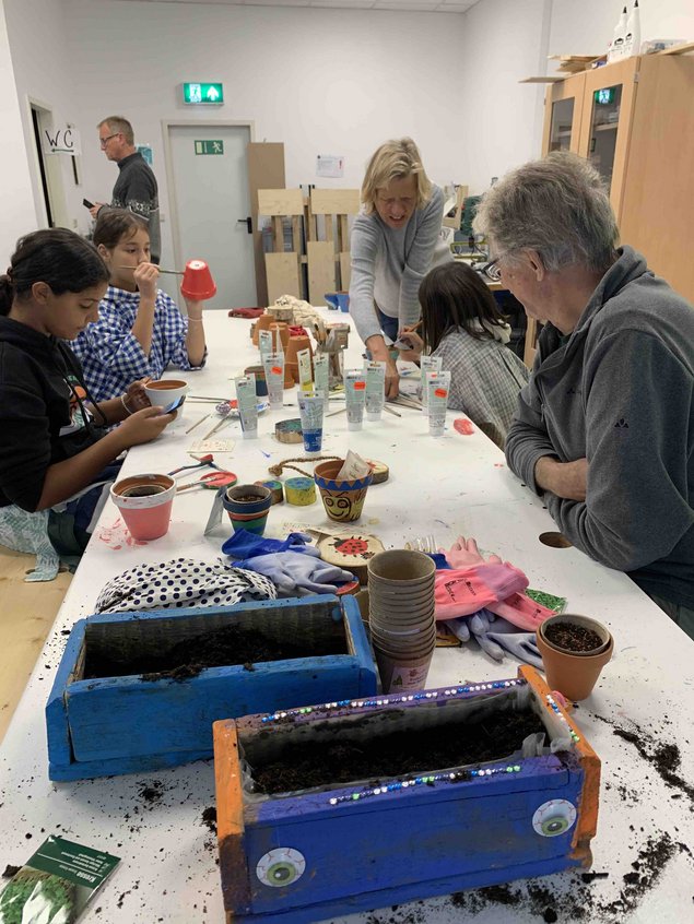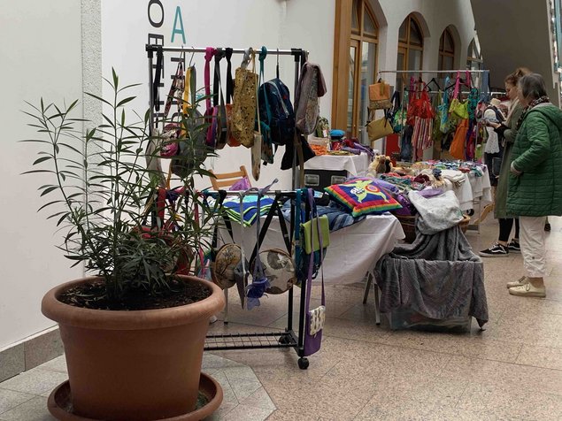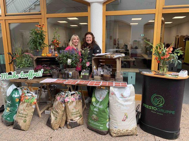 Neben den Produkten der heimischen Landwirtschaft konnten sich die Besucher auf ganz unterschiedliche Weise anregen lassen. Die Foodsharing-Gruppe bot gerettete Lebensmittel kostenlos feil, Werner Schmitt den eigenen Sayner Honig, die Damen vom Frauenzimmer unter der Leitung von Jutta Lehnert sprühten vor Kreativität und Farbenfreude (siehe Foto) und für die Fa. Pesto-Humus informierte Alexandra Menge über torffreie Erden und Gärtnereiprodukte. Da der Maker-Space-Mayen-Koblenz mit seiner Chefin Eva Pfitzner ebenfalls seine Räume geöffnet hatte, konnte man sich dort über die diversen Projekte der Einrichtung informieren, was für etliche Bendorfer zu einem richtigen Aha-Erlebnis wurde. Der Maker-Space unterstützte die Ausstellenden mit smarter Elektronik und der Nachwuchs der Marktbesucher konnte in den gut ausgestatteten Räumen auch noch Blumentöpfe bemalen und anschließend bepflanzen.