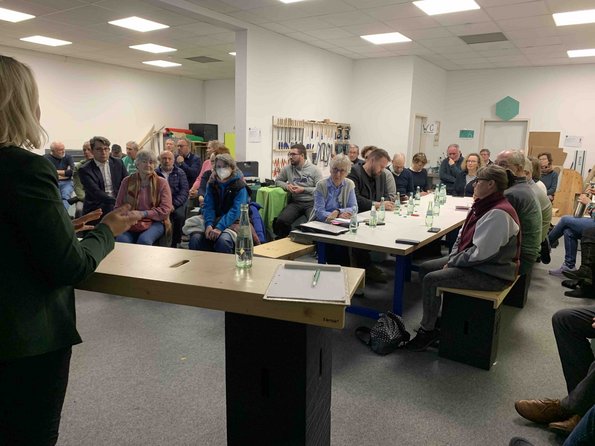So konnte Verena Örenbas, grüne Bundestagskandidatin, die beruflich für eine große Wohneigentümer-Organisation arbeitet, einige grundlegende Informationen vermitteln. So zum Beispiel, dass man derzeit eine neue Wärmepumpe – je nach Einkommenssituation – mit bis zu 70% gefördert bekommt. Selbst für den verbleibenden Rest stehen im Bedarfsfall günstige Kredite zur Verfügung. Und sie machte klar, dass eine Wärmepumpe in jedem Haus installiert werden kann, dass eine Fußbodenheizung keine Voraussetzung ist und dass auch in der Regel keine Heizkörper ausgetauscht werden müssen.