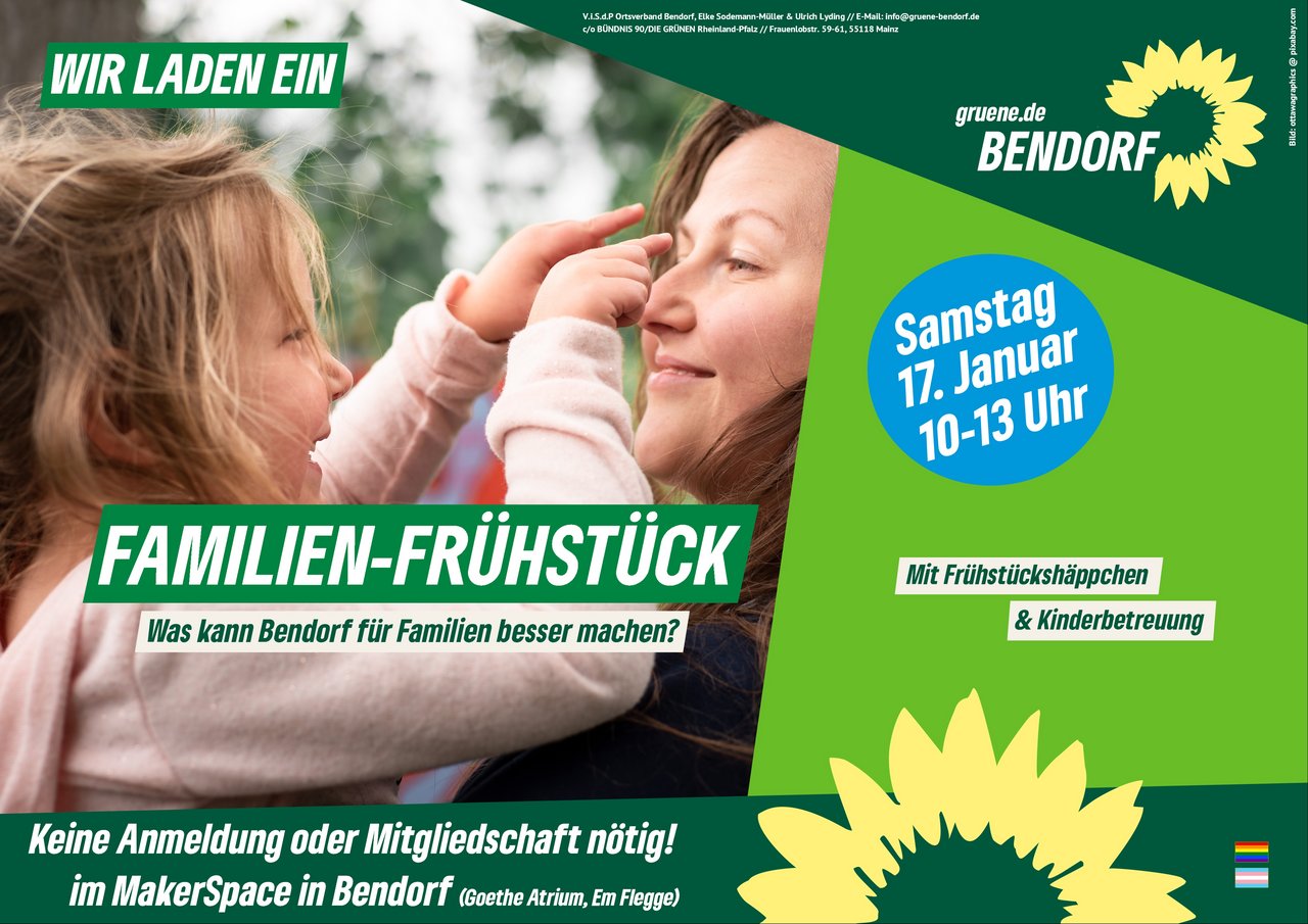 Wir freuen uns auf die Teilnahme vieler Bendorfer Familien! Keine Anmeldung oder Mitgliedschaft nötig. Einfach vorbeikommen und mitdiskutieren.